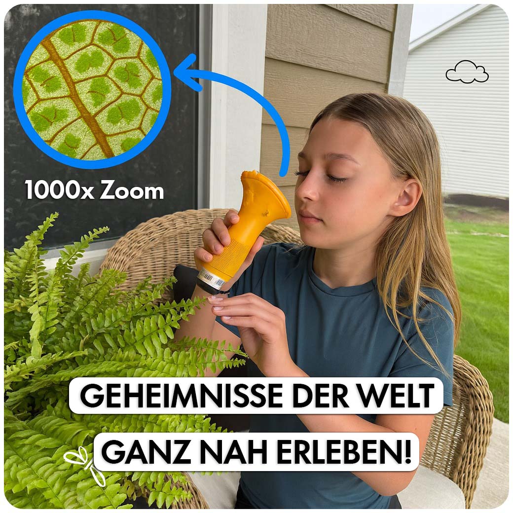 Während klassische Mikroskope sperrig, kompliziert und auf den Schreibtisch beschränkt sind, bringt unser Kinder-Mikroskop die Faszination der Wissenschaft direkt in den Alltag deines Kindes.